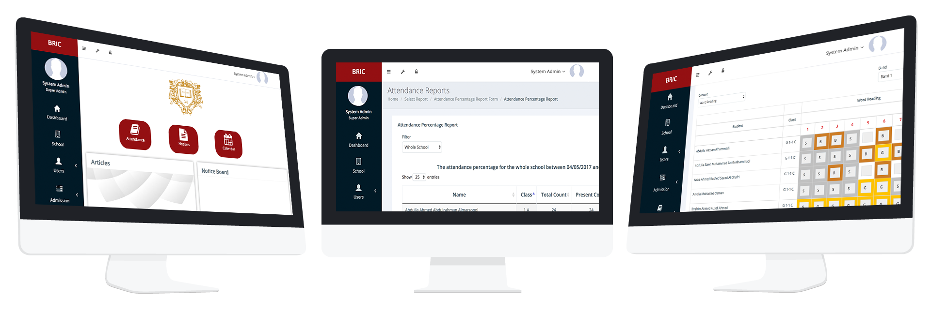 BRIC is comprehensive, completely customizable school management software. The product base is growing, and the product is being given excellent reviews by the schools which use the same, due to the maximum inclusivity of school capabilities, extensive features and customization, mobile responsiveness, a great deal of learning aides and a very friendly and excellent User Interface. Be it administrative, communicative, academic or management function that the school needs - BRIC offers a solution. From easy and efficient attendance recording and reporting to ADEC, timetable and cover management, customizable reports, communication to parents and staff via SMS, notifications and shared drive and groups, track the progress of the children academically over the years, library, inventory and store management and behavioral monitoring of the children - BRIC has it all in the most efficient way.